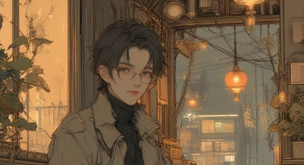 | 全体 | (Japanese man), (simple face, salt-faced), handsome, reading glasses, turtleneck sweater, short dark hair, neat and tidy, simple trench coat, dark turtleneck sweater, tapered slacks, leather loafers, mature fashion, sitting at a cafe table, warm interior lighting, holding a book, a slight smile, looking at the camera, cozy atmosphere, cinematic lighting, masterpiece, best quality, 4k |