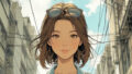 | 髪型・表情 | 黒髪で、少し**カールがかった軽やかなスタイル**。木陰でリラックスした、穏やかで優しい表情。 |