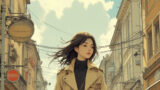フランクフルトの歴史的な名所やモダンな風景を背景に、異なる季節・テイストのファッションで旅するシーンをイメージしてプロンプトを作成しました。